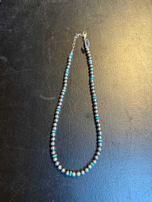 14 inch turquoise and sterling silver pearl on paperclip chain